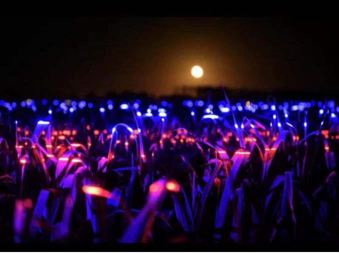 记者从荷兰国家旅游局获悉,荷兰新锐艺术家丹·罗斯加德在荷兰弗莱福兰省一片两万平方米的农田里,打造了一个灯光艺术装置。该艺术装置名为《生长》,旨在向农业致敬,是丹·罗斯加德继《梵高星空小路》夜游项目之后,打造的一处新艺术景观。