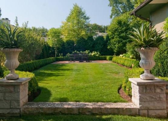 (2)园林整体布局呈现严格的几何图形。园路处理成笔直的通道,在道路交叉处处理成小广场形式,点状分布具有几何造型的水池、喷泉等;园林树木则精心修剪成锥形、球形、圆柱形等,草坪、花圃必须以严格的几何图案栽植、修剪。